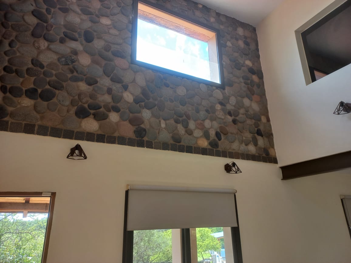 Aberturas de aluminio con mosquitero. Persianas en habitaciones. Pisos de cerámico. Alarma. Alarma perimetral en toda la propiedad. Portón corredizo. Cortina Black Out. Techo de losa, madera y tejas.